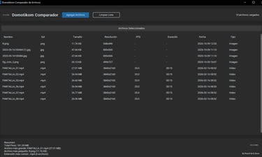 Domotikom Comparador es la herramienta complementaria perfecta para fotógrafos, editores de vídeo y archivistas digitales. Mientras que los exploradores de archivos tradicionales solo te muestran nombres y fechas, nuestro software realiza una introspección profunda de cada archivo, extrayendo datos técnicos críticos que te permiten auditar la calidad y consistencia de tu material.