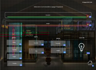 En el rack de control se instaló una botonera física Crestron con cuatro botones para poder encender o apagar la exposición y encender o apagar las luces de limpieza. Todo esto con la finalidad de darle al cliente la tranquilidad de que si se queda sin batería el iPad podían seguir trabajando de forma habitual.