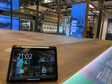 El control de toda la exposición museográfica, iluminación, video proyección, monitores, sonido... lo realice con un sistema de automatización Crestron CP4 y una Tablet iPad Air.