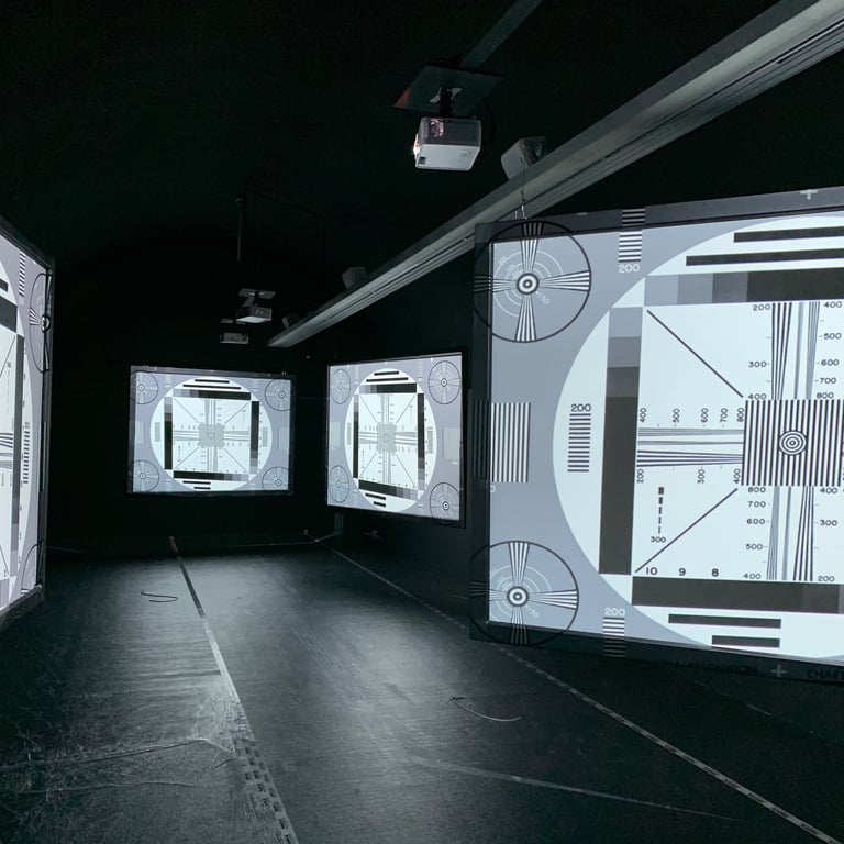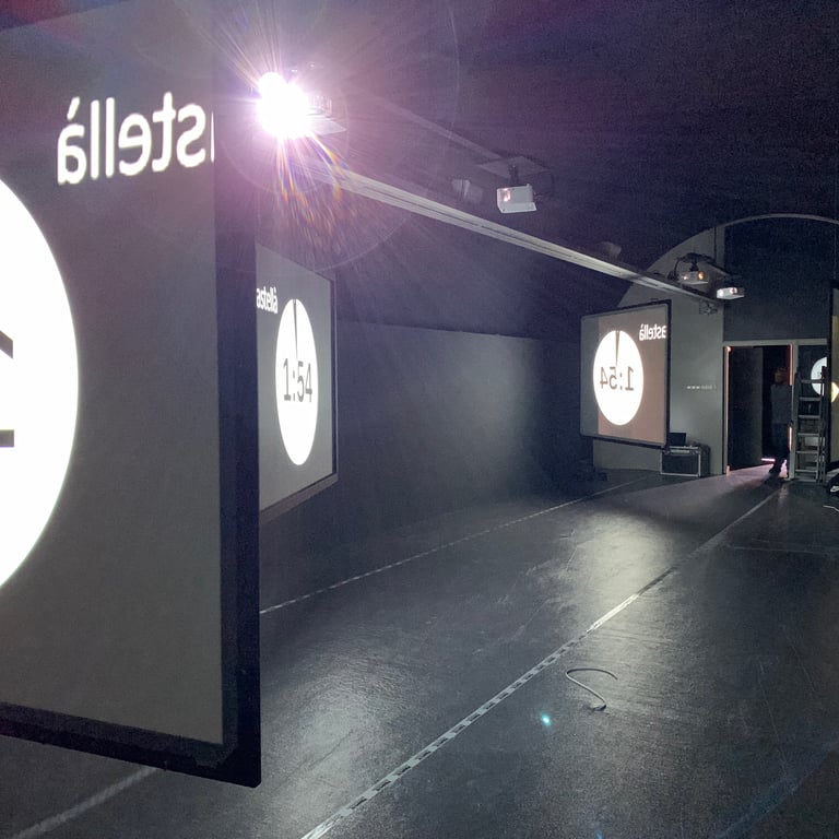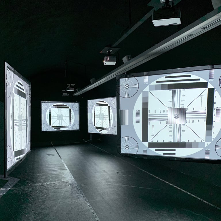 En la ingeniería audiovisual instalé 4 video proyectores Vivitek de corta distancia y 4 reproductores Brightsign conectados en red. El audio era un 5.1 lo que permitía que se escuchara cada audio en su pantalla independiente, ya que la producción iba sincronizada.