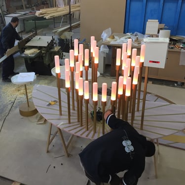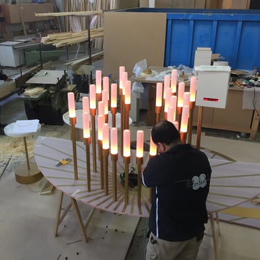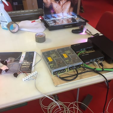Se dispusieron 50 lamparas led RGB en 50 tubos con un metarilato opal.