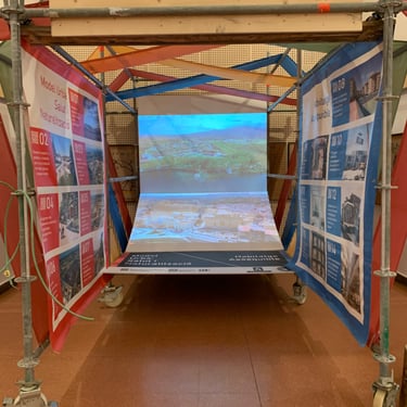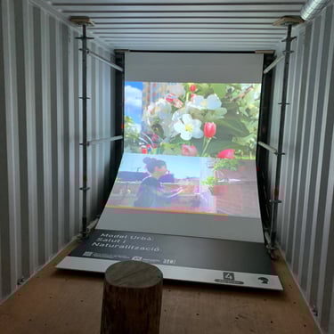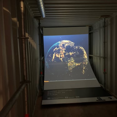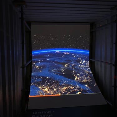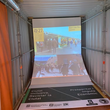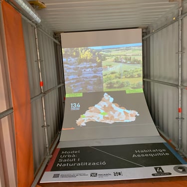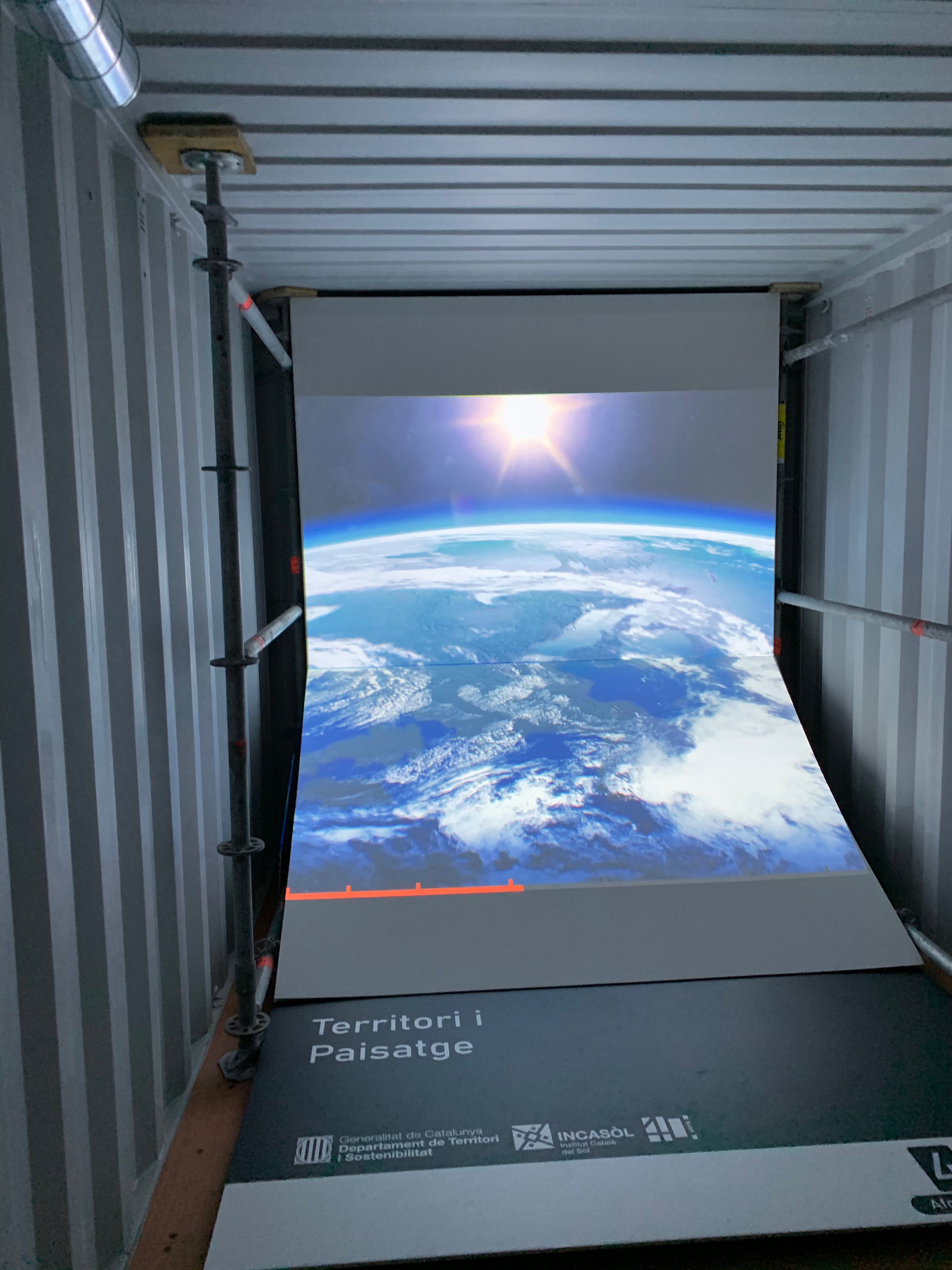 Esta exposición itinerante para la empresa INCASOL, empezó en el Palacio Robert de Barcelona, contaba de 6 contenedores de camión donde se ubicaron dos proyectores de video en cada uno con su correspondiente equipo de sonido.