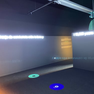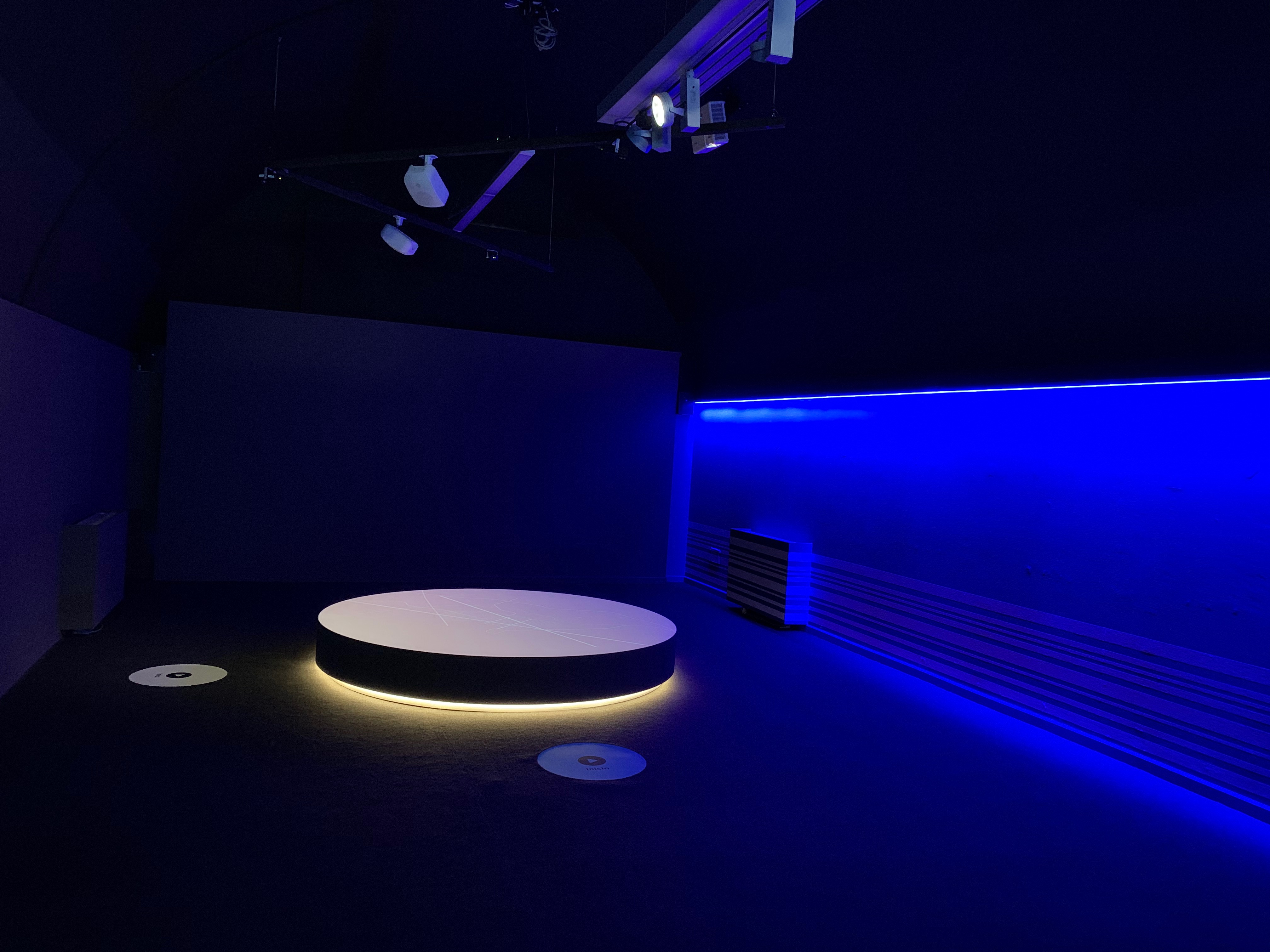 En plena pandemia de coronavirus, instalamos la exposición. Dado que habían varios audiovisuales con diferentes idiomas, no se quería poner pulsadores de selección, así que optamos por crear unos detectores de presencia para activar los videos.