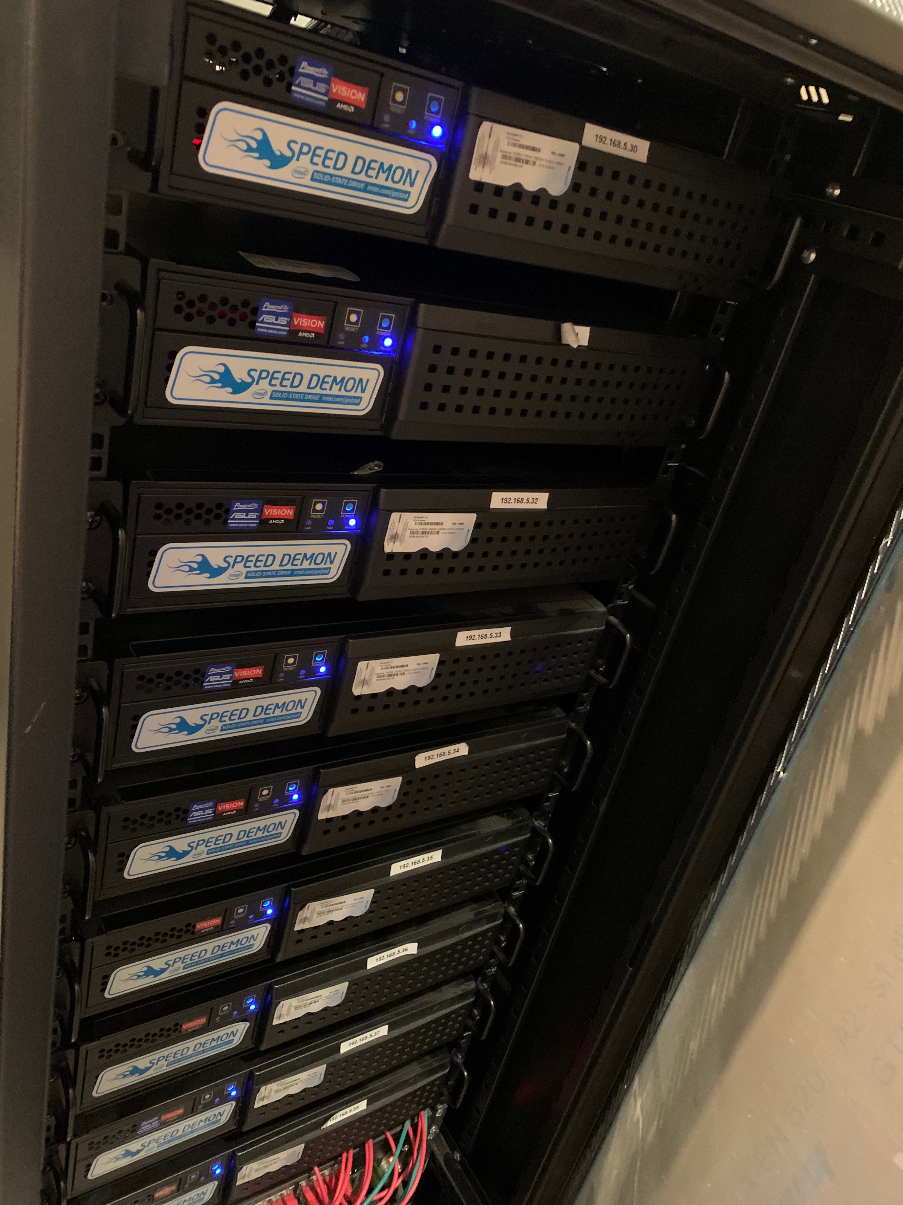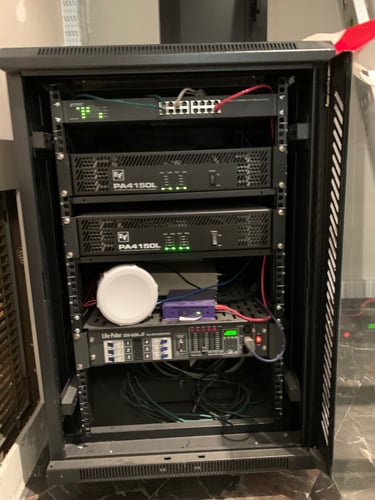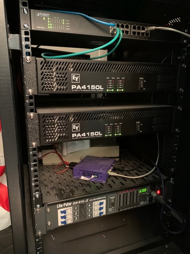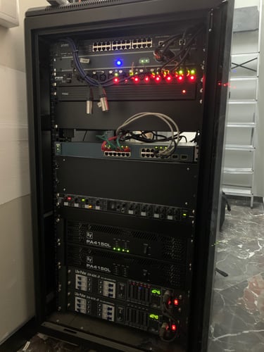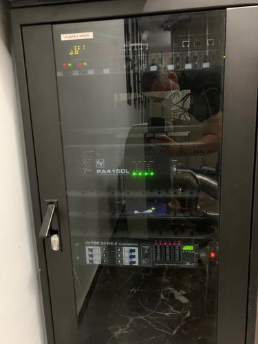 Optamos por diferenciar los espacios, así que colocamos 5 racks de control, dos por planta, de esta manera era mas fácil la centralización de los equipos de sonido y video.
