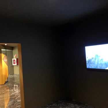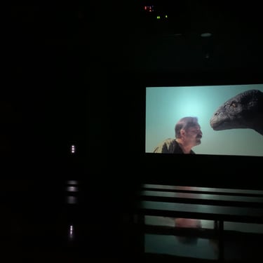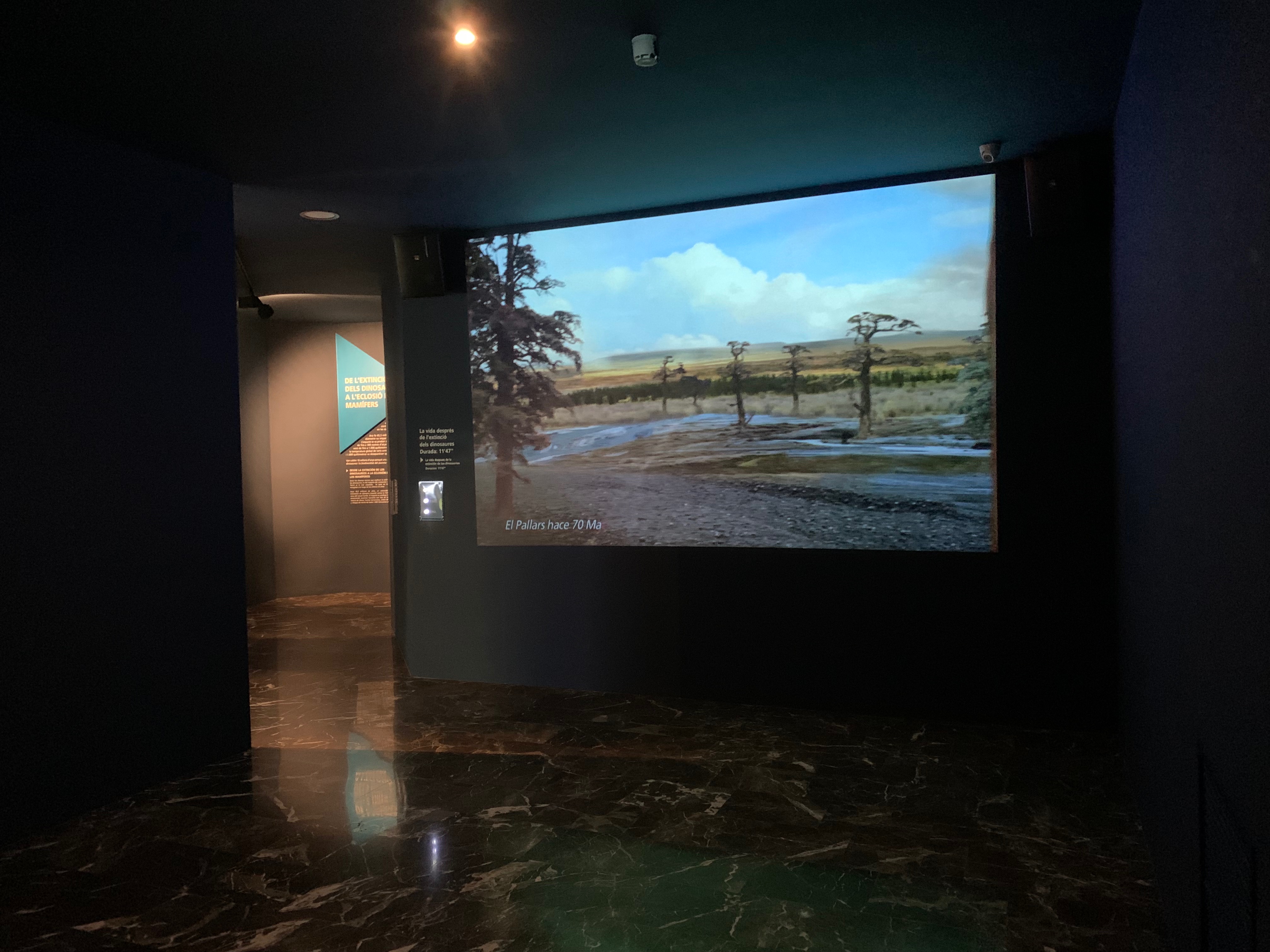 En la sala principal hay una pantalla de 5 metros con una proyección 3D para utilizar con gafas, con unos filtros polarizados en circulo.