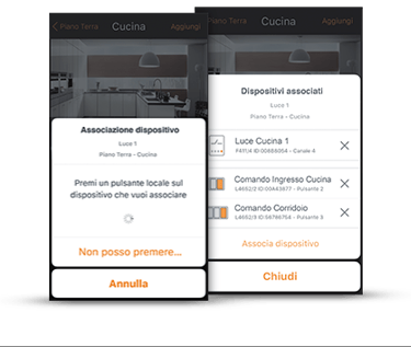 4. Selecciona los dispositivos a asociar. Tu trabajo está terminado; el actuador y su control están asociados. Todos los datos se guardarán en MyHOMEServer1 y ya estarán disponibles para tu cliente en su Aplicación.