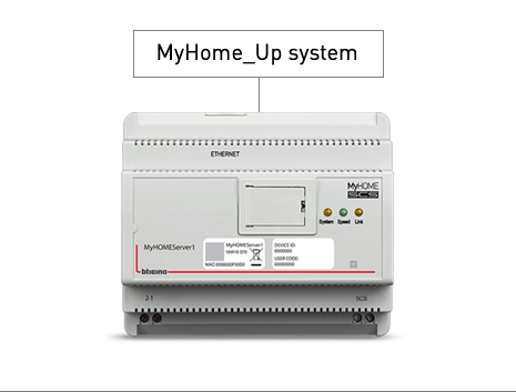 1. Conecta todos los dispositivos y el dispositivo MyHOMEServer1 al sistema BUS.