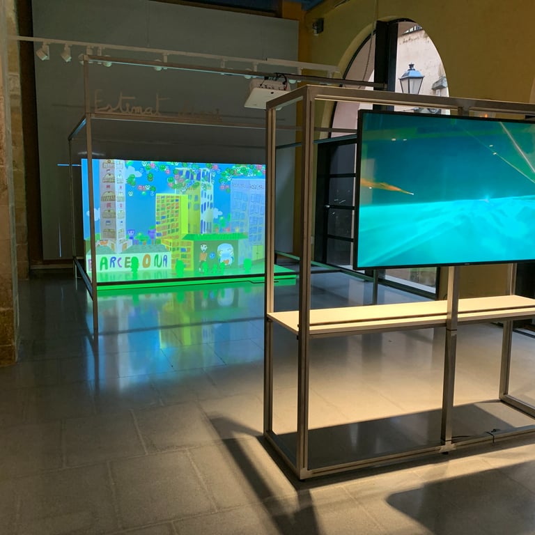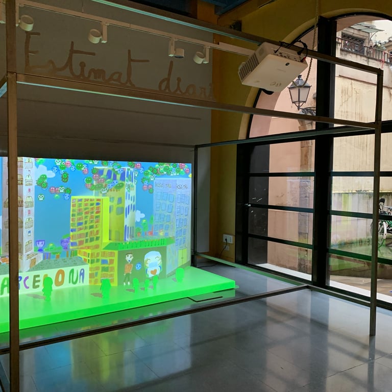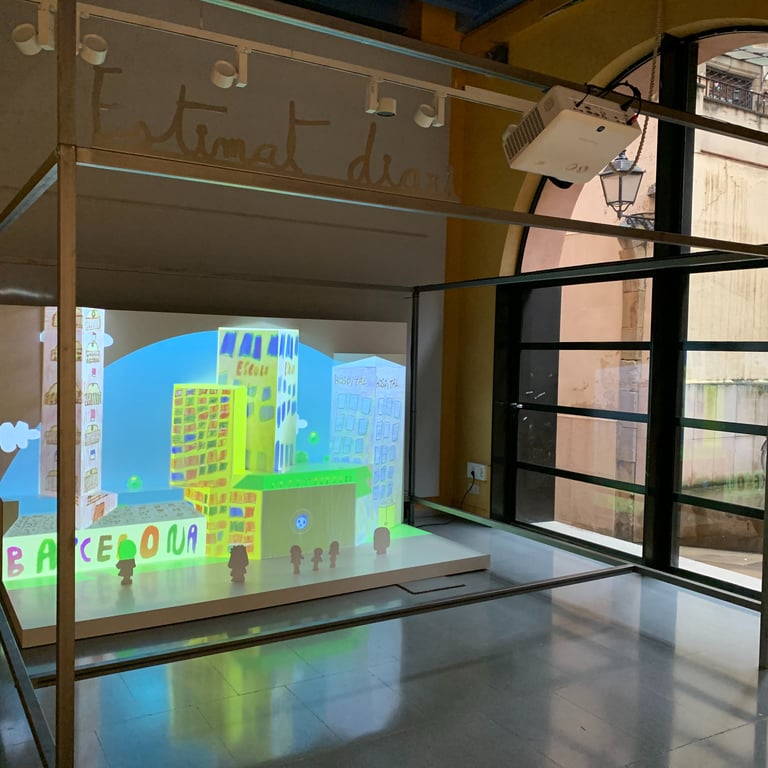 Consistía de una maqueta hecha con poliespán donde se proyectaban dibujos que los niños hicieron durante el confinamiento. 'Estimat Diari' constaba de un videoproyector de corta distancia Viewsonic, un monitor de 50" un sistema de audio y dos reproductores Brightsign conectado en red.